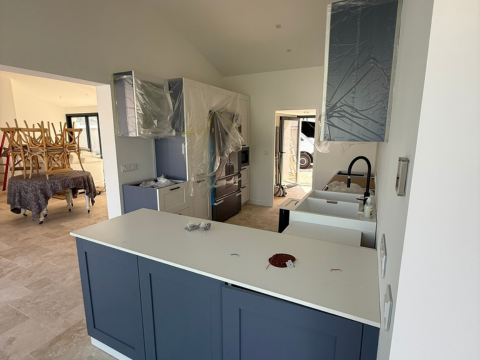 Après une rénovation complète, nous avons réalisé la mise en peinture intégrale de cette villa, dans un blanc lumineux et intemporel.