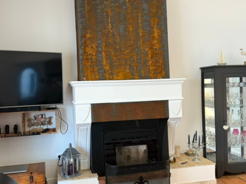 Sur ce conduit de cheminée, nous avons réalisé une décoration effet rouille en plusieurs étapes.